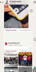 Registros mostram que Diego atuou diretamente na disseminação do conteúdo em um grupo intitulado “É VÍTOR HUGO”, onde foram enviados vídeos, documentos e mensagens com o objetivo de espalhar acusações contra Walber. Para aliados do deputado, trata-se de uma tentativa clara de desinformação com fins políticos.