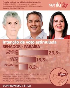 Pesquisa Veritá: Ricardo e Efraim lideram preferência do eleitorado paraibano para o Senado