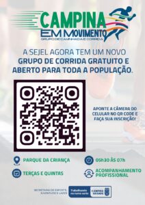 O servidor com interesse em participar dessa nova ação da Sejel, por meio do grupo de corrida, pode fazer a inscrição pelo QRcode (ver imagem abaixo) ou no local do treinamento (Parque da Criança nos horários citados) e em seguida já iniciar os treinamentos, que são prescritos e acompanhados pelo professor e educador físico, Jansen Ramos Campos.
