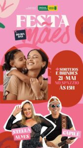 A Prefeitura de Campina Grande, sob a coordenação da primeira-dama, Juliana Figueiredo Cunha Lima, realiza, nesta quarta-feira, 21, no Spazzio, a tradicional Festa do Dia das Mães; com o apoio de todas as secretarias e órgãos da gestão municipal, além de parcerias com a iniciativa privada e deve reunir um público estimado em cinco mil mães.