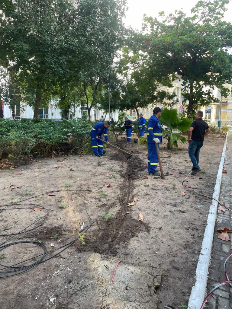 Equipes da Diretoria de Iluminação Pública (Dilup) da Secretaria de Infraestrutura de João Pessoa (Seinfra) realizaram, na tarde desta terça-feira (8), a reposição dos cabos elétricos que foram furtados da Praça Venâncio Neiva, no Centro da Capital. Cerca de 500 metros de cabos foram substituídos, restabelecendo a iluminação do espaço público.