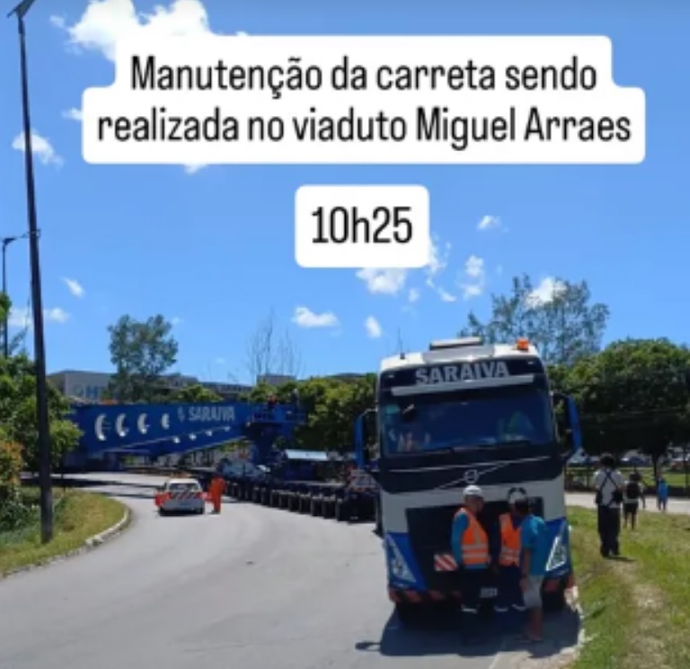 De acordo com a PRF, técnicos especializados já foram acionados para realizar o reparo no equipamento, que deve levar entre duas e três horas para ser concluído. Até a resolução do problema, a operação de transporte permanece paralisada.